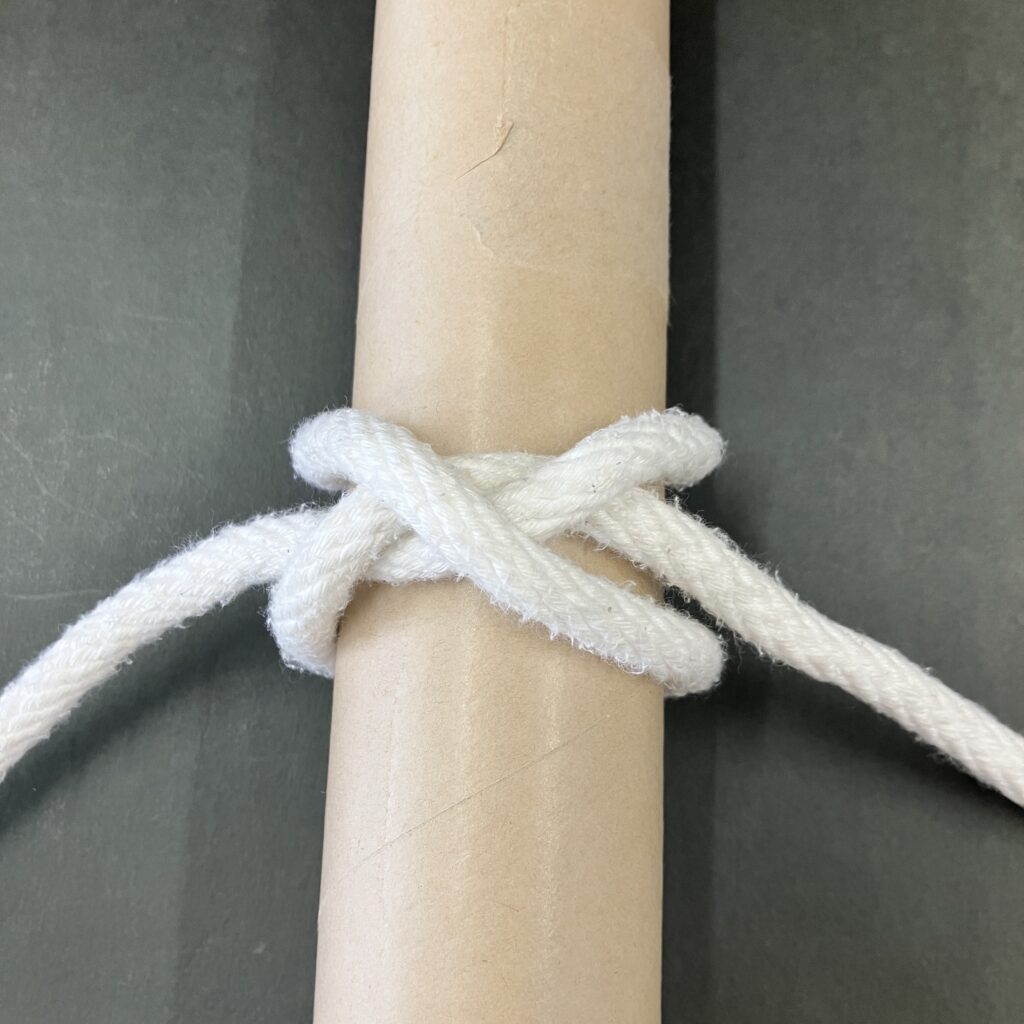 巻結びより強く締め付けることができ,かつゆるみにくい結び方です。袋などの口を縛ったり,ホースの口を蛇口に締め付けて固定する時などに使うとよいでしょう。
