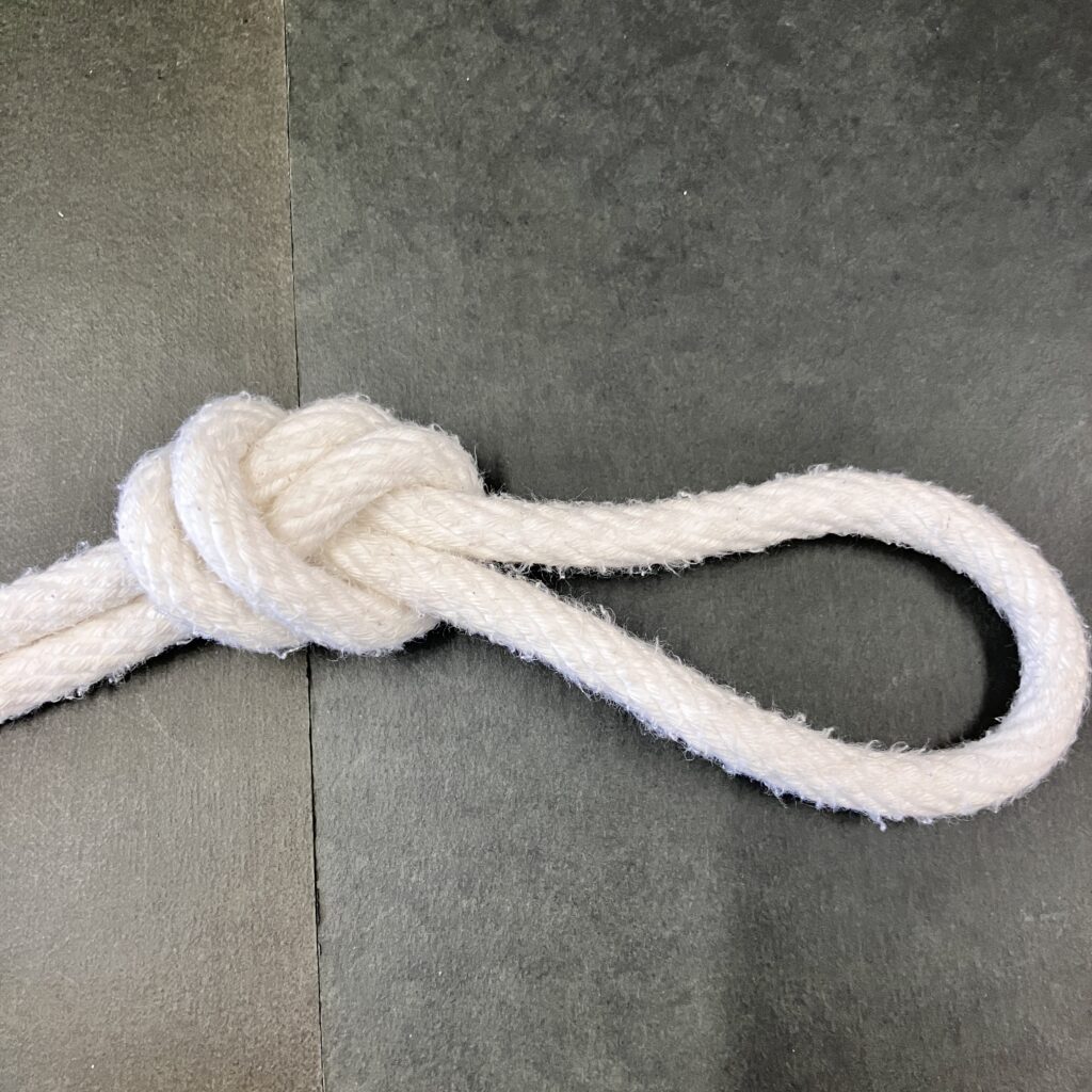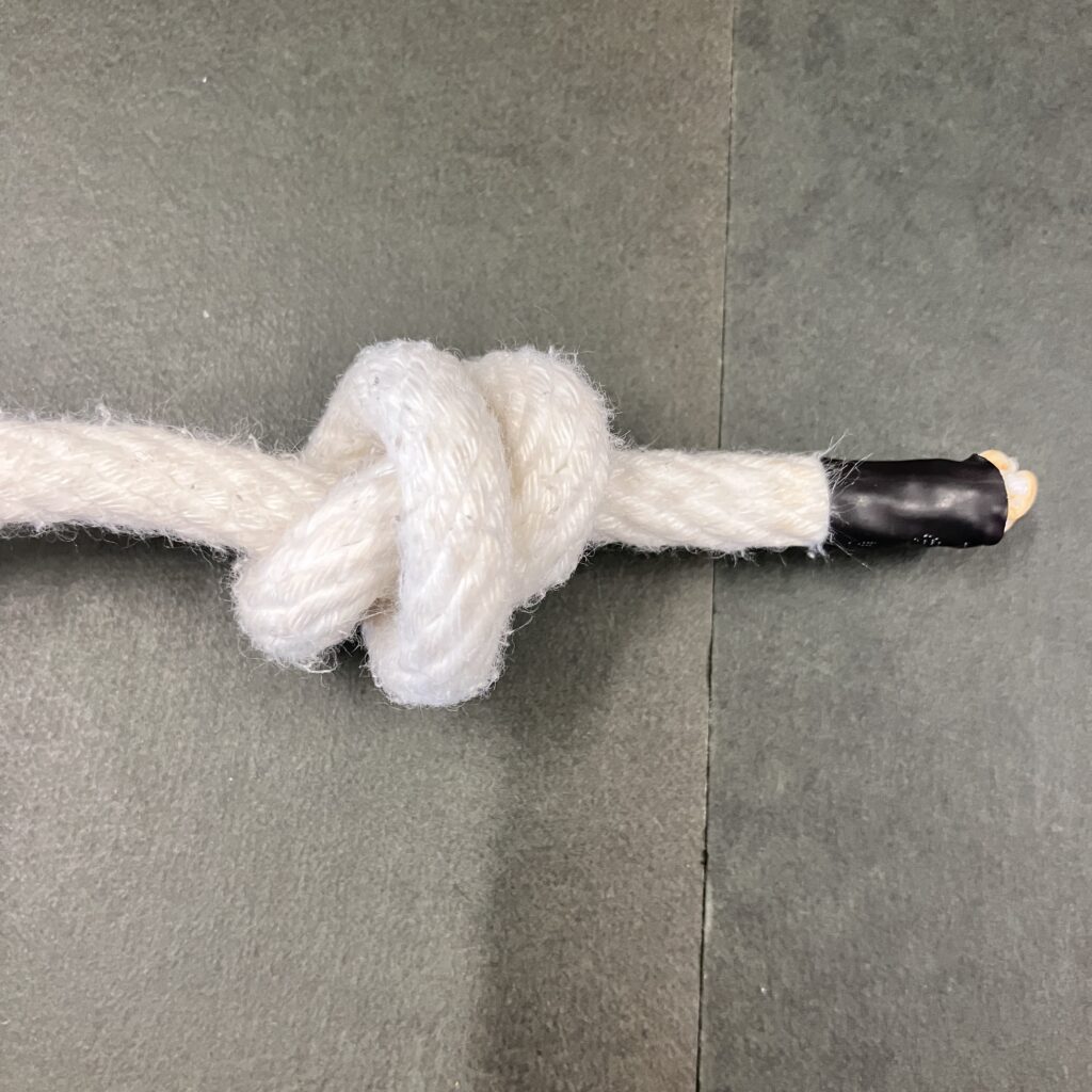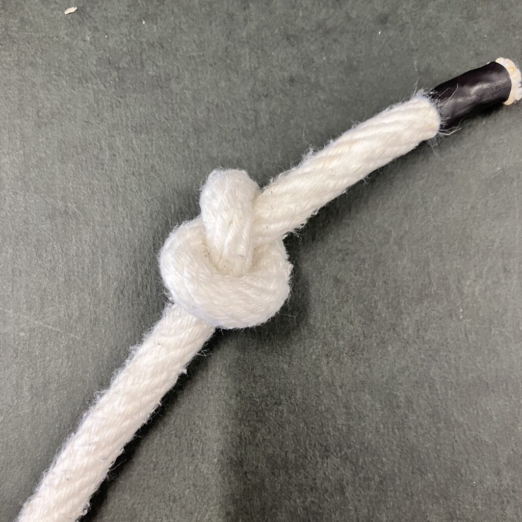 最もシンプルな結び方。紐が抜けてしまわないようにストッパーとして用います。